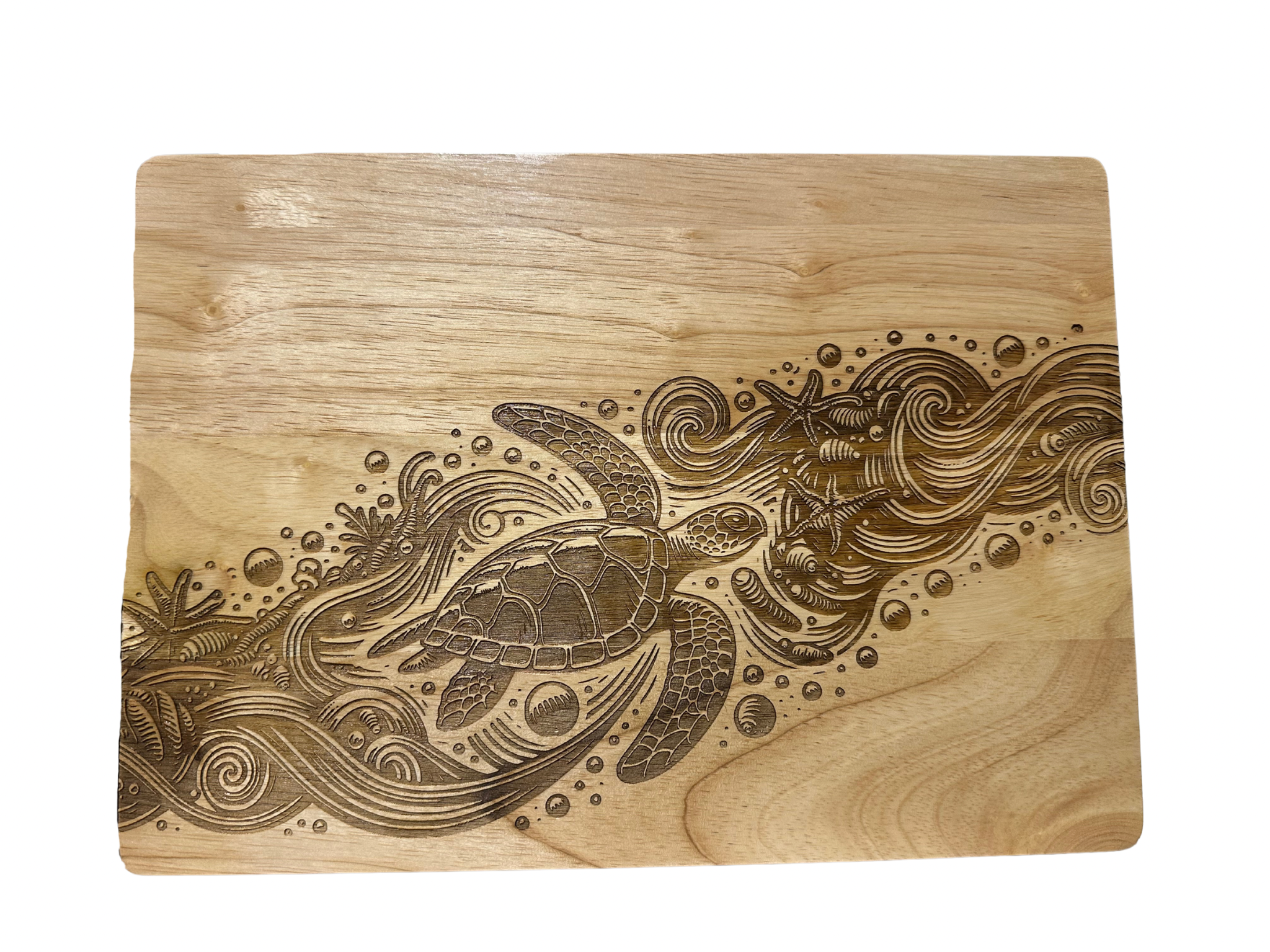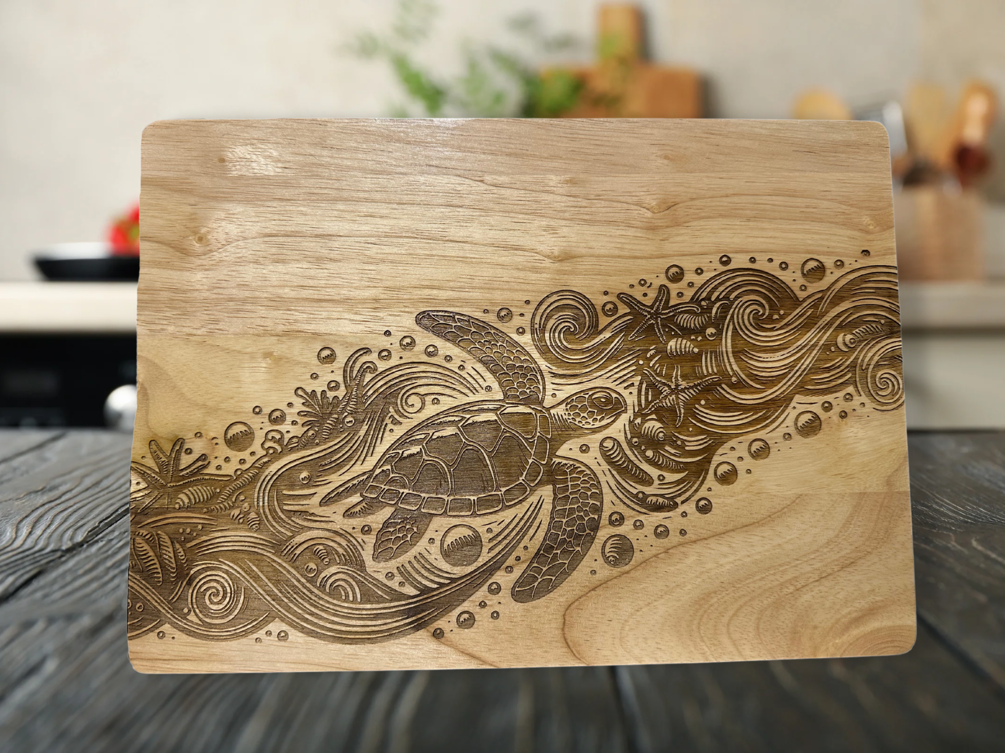 Introducing the Turtle Seascape Engraved Rubberwood Cutting Board, a perfect blend of aesthetics and functionality that will transform your kitchen experience. Crafted from durable rubberwood, this cutting board is not just a tool for chopping; it is a piece of art that brings a touch of the ocean into your home. The intricate turtle seascape design adds a unique flair to your kitchen, making meal preparation a delightful task.